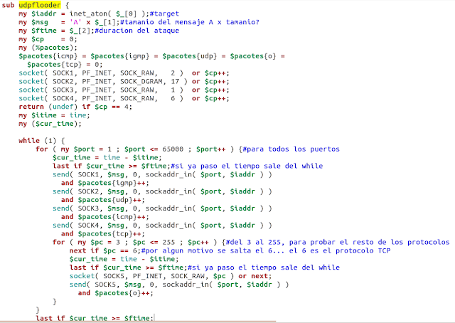 | Función udpflooder |